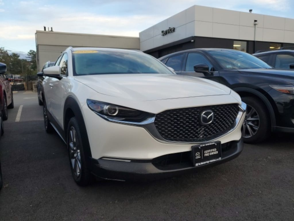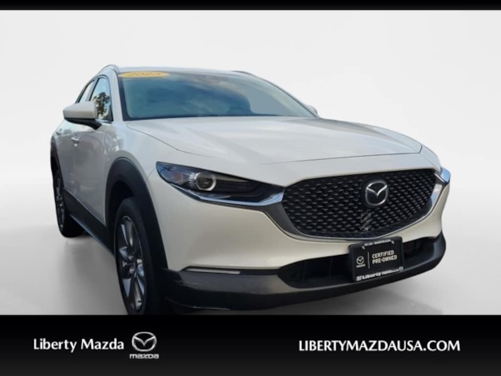 Liberty Mazda is proud to present you with another True Market Priced Pre-Owned Vehicle. This 2023 Mazda CX-30 2.5 S Select Package Mazda Certified Pre-Owned is loaded with the following Factory Options: Mazda Certified Pre-Owned Certified, 4-Wheel Disc Brakes, 4.095 Axle Ratio, 8 Speakers, ABS brakes, Air Conditioning, Alloy wheels, AM/FM radio, AppLink/Apple CarPlay and Android Auto, Auto High-beam Headlights, Automatic temperature control, Brake assist, Bumpers: body-color, Compass, Delay-off headlights, Driver door bin, Driver vanity mirror, Dual front impact airbags, Dual front side impact airbags, Electronic Stability Control, Emergency communication system: Mazda Connected Services (3-year complimentary trial included), Exterior Parking Camera Rear, Front anti-roll bar, Front Bucket Seats, Front Center Armrest, Front dual zone A/C, Front reading lights, Front wheel independent suspension, Fully automatic headlights, Illuminated Door Sill Trim Plates, Illuminated entry, Knee airbag, Leather Shift Knob, Leather steering wheel, Leatherette Seat Trim, Low tire pressure warning, MAZDA CONNECT Infotainment System, Occupant sensing airbag, Outside temperature display, Overhead airbag, Panic alarm, Passenger door bin, Passenger vanity mirror, Power door mirrors, Power steering, Power windows, Radio data system, Radio: AM/FM/HD Audio System, Rain sensing wipers, Rear seat center armrest, Rear side impact airbag, Rear window defroster, Rear window wiper, Remote keyless entry, Snowflake White Pearl Mica Paint, Speed control, Speed-sensing steering, Split folding rear seat, Spoiler, Steering wheel mounted audio controls, Tachometer, Telescoping steering wheel, Tilt steering wheel, Traction control, Trip computer, Turn signal indicator mirrors, Variably intermittent wipers, Wheel Locks, and Wheels: 18" x 7J Aluminum Alloy!!