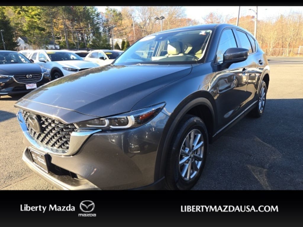 Liberty Mazda is proud to present you with another True Market Priced Pre-Owned Vehicle. This 2023 Mazda CX-5 2.5 S Select Package Mazda Certified Pre-Owned is loaded with the following Factory Options: Mazda Certified Pre-Owned Certified, 4-Wheel Disc Brakes, 4.624 Axle Ratio, 6 Speakers, ABS brakes, Air Conditioning, Alloy wheels, AM/FM radio, AppLink/Apple CarPlay and Android Auto, Auto High-beam Headlights, Automatic temperature control, Brake assist, Bumpers: body-color, Cargo Mat, Delay-off headlights, Driver door bin, Driver vanity mirror, Dual front impact airbags, Dual front side impact airbags, E911 Automatic Emergency Notification, Electronic Stability Control, Emergency communication system: MAZDA CONNECT, Exterior Parking Camera Rear, Four wheel independent suspension, Front anti-roll bar, Front Bucket Seats, Front Center Armrest w/Storage, Front dual zone A/C, Front reading lights, Fully automatic headlights, Heated Front Bucket Seats, Heated front seats, Illuminated entry, Infotainment System Voice Command, Leather Shift Knob, Leatherette Seat Trim, Low tire pressure warning, Machine Gray Metallic Paint, Multifunction Commander Control, Occupant sensing airbag, Outside temperature display, Overhead airbag, Overhead console, Pandora, Panic alarm, Passenger door bin, Passenger vanity mirror, Power door mirrors, Power driver seat, Power steering, Power windows, Radio Broadcast Data System Program Information, Radio data system, Radio: AM/FM/HD Audio System, Rain sensing wipers, Rear anti-roll bar, Rear reading lights, Rear seat center armrest, Rear window defroster, Rear window wiper, Remote keyless entry, Roof Rack Side Rails, SMS Text Msg Audio Delivery & Reply, Speed control, Speed-sensing steering, Split folding rear seat, Spoiler, Steering wheel mounted audio controls, Tachometer, Telescoping steering wheel, Tilt steering wheel, Traction control, Trip computer, Turn signal indicator mirrors, Variably intermittent wipers, Wheel Locks, and Wheels: 17" x 7J Aluminum Alloy!!