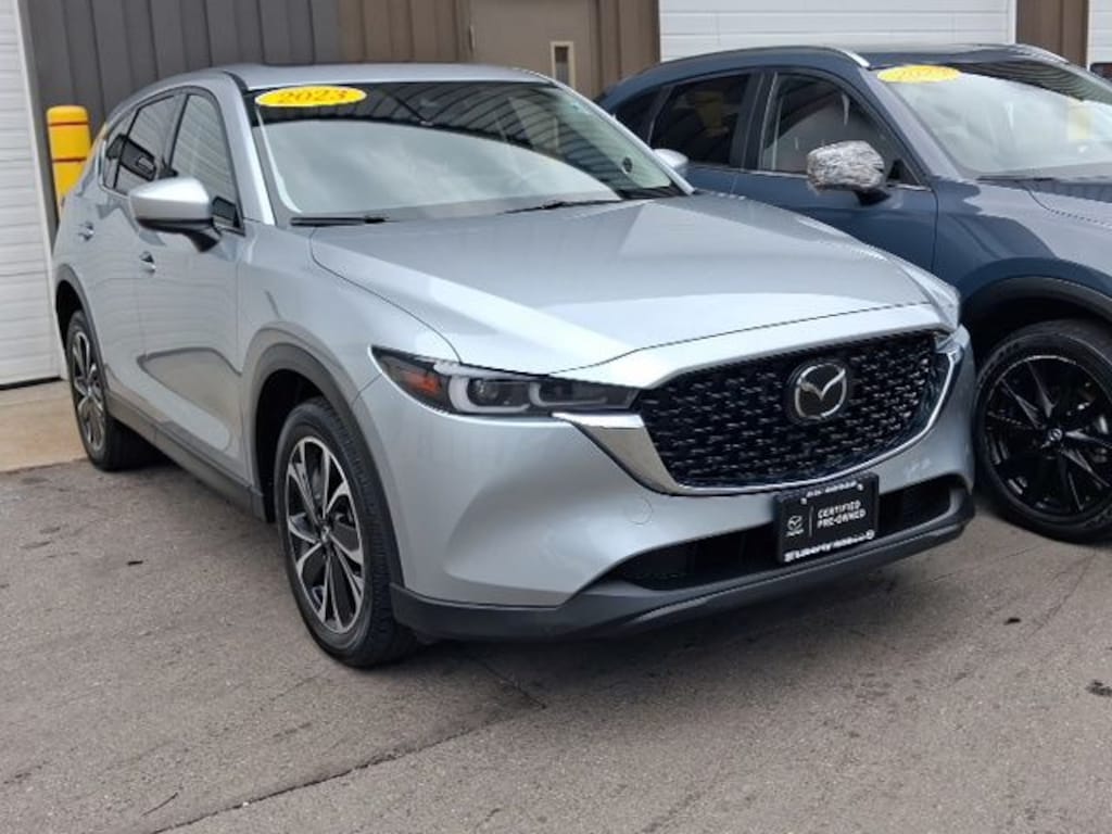 Liberty Mazda is proud to present you with another True Market Priced Pre-Owned Vehicle. This 2023 Mazda CX-5 2.5 S Premium Plus Package Mazda Certified Pre-Owned is loaded with the following Factory Options: Mazda Certified Pre-Owned Certified, 10 Speakers, 4-Wheel Disc Brakes, 4.624 Axle Ratio, ABS brakes, Air Conditioning, Alloy wheels, AM/FM radio: SiriusXM, AppLink/Apple CarPlay and Android Auto, Auto High-beam Headlights, Auto-dimming Rear-View mirror, Automatic temperature control, Brake assist, Bumpers: body-color, Delay-off headlights, Driver door bin, Driver vanity mirror, Dual front impact airbags, Dual front side impact airbags, E911 Automatic Emergency Notification, Electronic Stability Control, Emergency communication system: MAZDA CONNECT, Exterior Parking Camera Rear, Four wheel independent suspension, Front anti-roll bar, Front Bucket Seats, Front Center Armrest w/Storage, Front dual zone A/C, Front reading lights, Fully automatic headlights, Garage door transmitter: HomeLink, Heads-Up Display, Heated door mirrors, Heated front seats, Heated rear seats, Heated steering wheel, Heated/Ventilated Front Bucket Seats, Illuminated entry, Infotainment System Voice Command, Leather Seat Trim, Leather Shift Knob, Low tire pressure warning, Memory seat, Multifunction Commander Control, Occupant sensing airbag, Outside temperature display, Overhead airbag, Overhead console, Pandora, Panic alarm, Passenger door bin, Passenger vanity mirror, Power door mirrors, Power driver seat, Power Liftgate, Power moonroof, Power passenger seat, Power steering, Power windows, Radio Broadcast Data System Program Information, Radio data system, Radio: AM/FM/HD Audio System, Rain sensing wipers, Rear anti-roll bar, Rear reading lights, Rear seat center armrest, Rear window defroster, Rear window wiper, Remote keyless entry, SMS Text Msg Audio Delivery & Reply, Speed control, Speed-sensing steering, Split folding rear seat, Spoiler, Steering wheel mounted audio controls, Tachometer, Telescoping steering wheel, Tilt steering wheel, Traction control, Trip computer, Turn signal indicator mirrors, Variably intermittent wipers, Ventilated front seats, and Wheels: 19" x 7J Aluminum Alloy!!