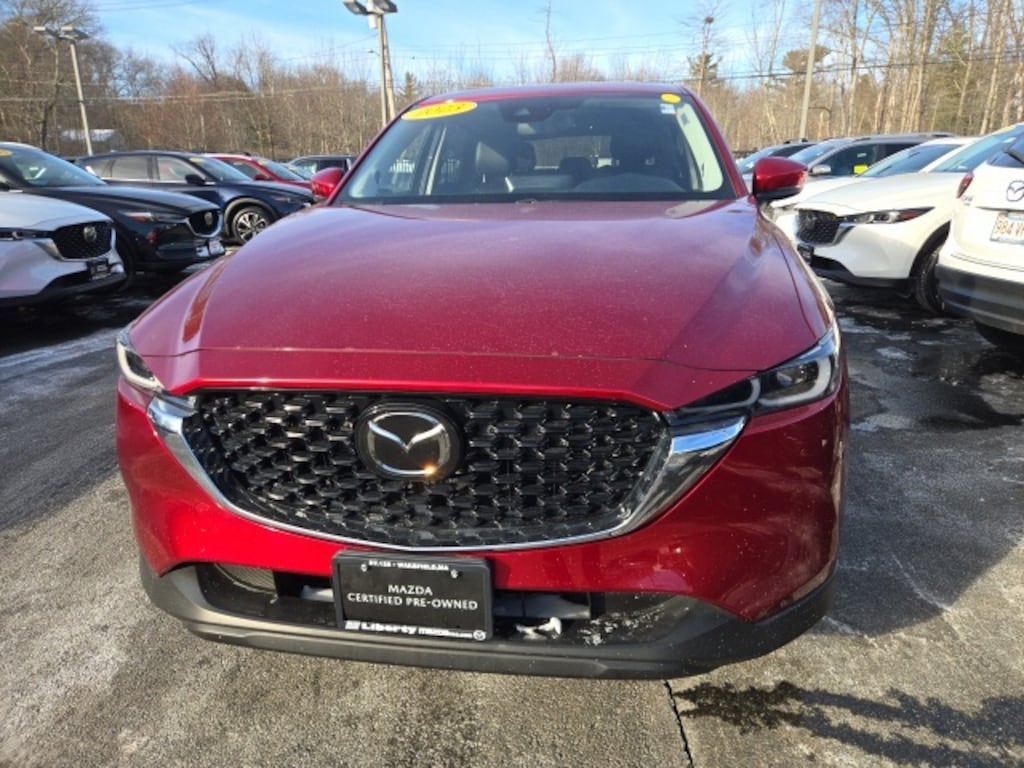 Liberty Mazda is proud to present you with another True Market Priced Pre-Owned Vehicle. This 2023 Mazda CX-5 2.5 S Premium Package Mazda Certified Pre-Owned is loaded with the following Factory Options: Mazda Certified Pre-Owned Certified, 10 Speakers, 4-Wheel Disc Brakes, 4.624 Axle Ratio, ABS brakes, Air Conditioning, Alloy wheels, AM/FM radio: SiriusXM, AppLink/Apple CarPlay and Android Auto, Auto High-beam Headlights, Auto-dimming Rear-View mirror, Automatic temperature control, Brake assist, Bumpers: body-color, Delay-off headlights, Driver door bin, Driver vanity mirror, Dual front impact airbags, Dual front side impact airbags, E911 Automatic Emergency Notification, Electronic Stability Control, Emergency communication system: MAZDA CONNECT, Exterior Parking Camera Rear, Four wheel independent suspension, Front anti-roll bar, Front Bucket Seats, Front Center Armrest w/Storage, Front dual zone A/C, Front reading lights, Fully automatic headlights, Garage door transmitter: HomeLink, Heated door mirrors, Heated Front Bucket Seats, Heated front seats, Illuminated entry, Infotainment System Voice Command, Leather Seat Trim, Leather Shift Knob, Low tire pressure warning, Memory seat, Multifunction Commander Control, Occupant sensing airbag, Outside temperature display, Overhead airbag, Overhead console, Pandora, Panic alarm, Passenger door bin, Passenger vanity mirror, Power door mirrors, Power driver seat, Power Liftgate, Power moonroof, Power passenger seat, Power steering, Power windows, Radio Broadcast Data System Program Information, Radio data system, Radio: AM/FM/HD Audio System, Rain sensing wipers, Rear anti-roll bar, Rear reading lights, Rear seat center armrest, Rear window defroster, Rear window wiper, Remote keyless entry, SMS Text Msg Audio Delivery & Reply, Soul Red Crystal Metallic Paint, Speed control, Speed-sensing steering, Split folding rear seat, Spoiler, Steering wheel mounted audio controls, Tachometer, Telescoping steering wheel, Tilt steering wheel, Traction control, Trip computer, Turn signal indicator mirrors, Variably intermittent wipers, and Wheels: 19" x 7J Aluminum Alloy!!