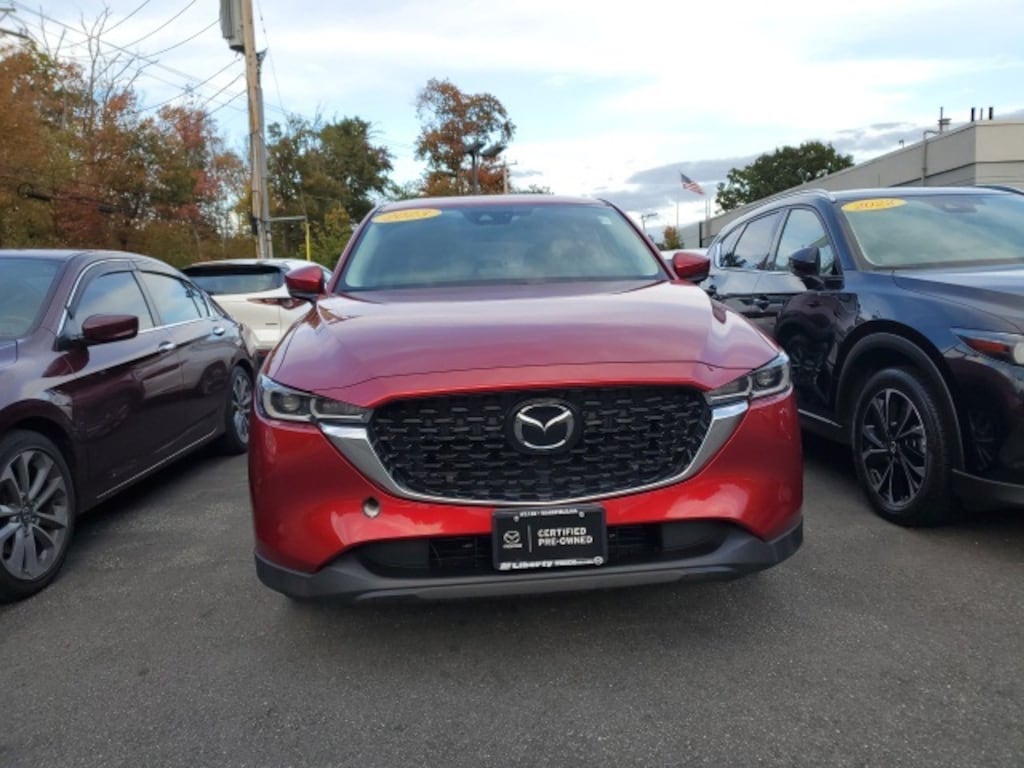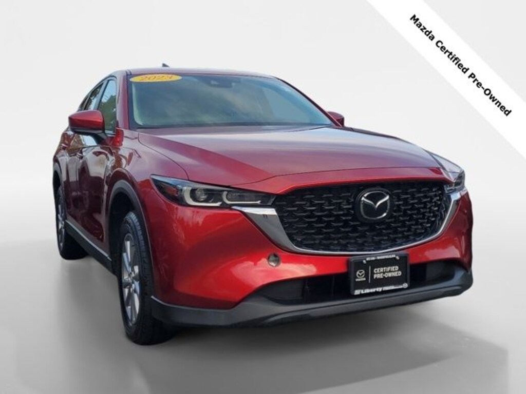 Liberty Mazda is proud to present you with another True Market Priced Pre-Owned Vehicle. This 2023 Mazda CX-5 2.5 S Select Package Mazda Certified Pre-Owned is loaded with the following Factory Options: Mazda Certified Pre-Owned Certified, 4-Wheel Disc Brakes, 4.624 Axle Ratio, 6 Speakers, ABS brakes, Air Conditioning, Alloy wheels, AM/FM radio, AppLink/Apple CarPlay and Android Auto, Auto High-beam Headlights, Automatic temperature control, Brake assist, Bumpers: body-color, Delay-off headlights, Driver door bin, Driver vanity mirror, Dual front impact airbags, Dual front side impact airbags, E911 Automatic Emergency Notification, Electronic Stability Control, Emergency communication system: MAZDA CONNECT, Exterior Parking Camera Rear, Four wheel independent suspension, Front anti-roll bar, Front Bucket Seats, Front Center Armrest w/Storage, Front dual zone A/C, Front reading lights, Fully automatic headlights, Heated Front Bucket Seats, Heated front seats, Illuminated entry, Infotainment System Voice Command, Leather Shift Knob, Leatherette Seat Trim, Low tire pressure warning, Multifunction Commander Control, Occupant sensing airbag, Outside temperature display, Overhead airbag, Overhead console, Pandora, Panic alarm, Passenger door bin, Passenger vanity mirror, Power door mirrors, Power driver seat, Power steering, Power windows, Radio Broadcast Data System Program Information, Radio data system, Radio: AM/FM/HD Audio System, Rain sensing wipers, Rear anti-roll bar, Rear reading lights, Rear seat center armrest, Rear window defroster, Rear window wiper, Remote keyless entry, SMS Text Msg Audio Delivery & Reply, Soul Red Crystal Metallic Paint, Speed control, Speed-sensing steering, Split folding rear seat, Spoiler, Steering wheel mounted audio controls, Tachometer, Telescoping steering wheel, Tilt steering wheel, Traction control, Trip computer, Turn signal indicator mirrors, Variably intermittent wipers, and Wheels: 17" x 7J Aluminum Alloy!!