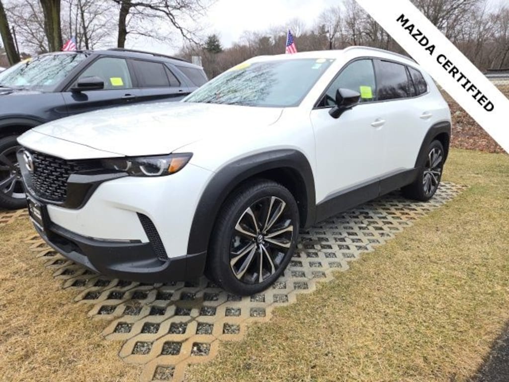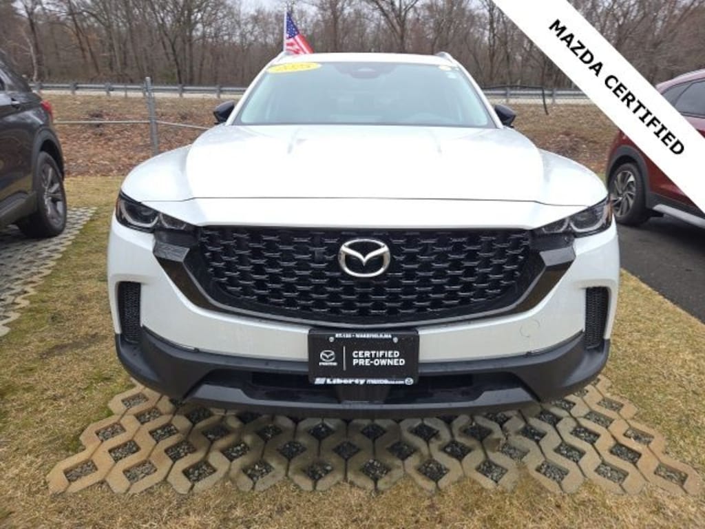 Liberty Mazda is proud to present you with another True Market Priced Pre-Owned Vehicle. This 2025 Mazda CX-50 2.5 S Premium Plus Package Mazda Certified Pre-Owned is loaded with the following Factory Options: Cargo Package, Mazda Certified Pre-Owned Certified, 12 Speakers, 4-Wheel Disc Brakes, ABS brakes, Air Conditioning, Alloy wheels, AM/FM radio: SiriusXM, AppLink/Apple CarPlay and Android Auto, Auto High-beam Headlights, Auto-dimming Rear-View mirror, Automatic temperature control, Brake assist, Bumpers: body-color, Delay-off headlights, Driver door bin, Driver vanity mirror, Dual front impact airbags, Dual front side impact airbags, Electronic Stability Control, Emergency communication system: MAZDA CONNECT, Exterior Parking Camera Rear, Front anti-roll bar, Front Bucket Seats, Front Center Armrest, Front dual zone A/C, Front reading lights, Front wheel independent suspension, Fully automatic headlights, Garage door transmitter: HomeLink, Heads-Up Display, Heated and Ventilated Front Seats with 3 Level Adjustment, Heated door mirrors, Heated front seats, Illuminated entry, Knee airbag, Leather Seat Trim, Leather Shift Knob, Leather steering wheel, Low tire pressure warning, Memory seat, Occupant sensing airbag, Outside temperature display, Overhead airbag, Overhead console, Panic alarm, Passenger door bin, Passenger vanity mirror, Power door mirrors, Power driver seat, Power Liftgate, Power moonroof, Power passenger seat, Power steering, Power windows, Radio data system, Radio: AM/FM/HD Bose 12-Speaker Audio Sound System, Rain sensing wipers, Rear seat center armrest, Rear window defroster, Rear window wiper, Remote keyless entry, Speed control, Speed-sensing steering, Split folding rear seat, Spoiler, Steering wheel mounted audio controls, Tachometer, Telescoping steering wheel, Tilt steering wheel, Traction control, Trip computer, Turn signal indicator mirrors, Variably intermittent wipers, Ventilated front seats, Wheels: 20" x 8J Aluminum Alloy Black Metallic with Machining Cut, and Wind Chill Pearl Paint Charge!!