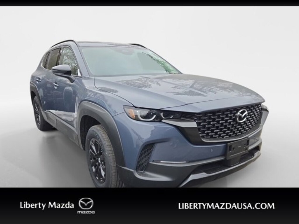 Liberty Mazda is proud to present you with another True Market Priced Vehicle. This 2026 Mazda CX-50 Hybrid Premium is loaded with the following Factory Options: 2.5L 4-Cylinder 2.5L 4-Cylinder, 12 Speakers, 4-Wheel Disc Brakes, ABS brakes, Air Conditioning, Alloy wheels, AM/FM radio: SiriusXM, AppLink/Apple CarPlay and Android Auto, Auto High-beam Headlights, Auto-dimming Rear-View mirror, Automatic temperature control, Brake assist, Bumpers: body-color, Carpet Cargo Mat, Delay-off headlights, Driver door bin, Driver vanity mirror, Dual front impact airbags, Dual front side impact airbags, Electronic Stability Control, Emergency communication system: MAZDA CONNECT, Exterior Parking Camera Rear, Front anti-roll bar, Front Bucket Seats, Front Center Armrest, Front dual zone A/C, Front reading lights, Front wheel independent suspension, Fully automatic headlights, Heated door mirrors, Heated front seats, Illuminated entry, Knee airbag, Leather Seat Trim, Leather Shift Knob, Leather steering wheel, Low tire pressure warning, Memory seat, Occupant sensing airbag, Outside temperature display, Overhead airbag, Overhead console, Panic alarm, Passenger door bin, Passenger vanity mirror, Power door mirrors, Power driver seat, Power Liftgate, Power moonroof, Power passenger seat, Power steering, Power windows, Radio data system, Radio: AM/FM/HD Bose 12-Speaker Audio Sound System, Rain sensing wipers, Rear seat center armrest, Rear window defroster, Rear window wiper, Remote keyless entry, Speed control, Speed-sensing steering, Split folding rear seat, Spoiler, Steering wheel mounted audio controls, Tachometer, Telescoping steering wheel, Tilt steering wheel, Traction control, Trip computer, Turn signal indicator mirrors, Variably intermittent wipers, Ventilated front seats, and Wheels: 17 x 7J Aluminum Alloy Black Metallic Finish!! Recent Arrival! 39/37 City/Highway MPG