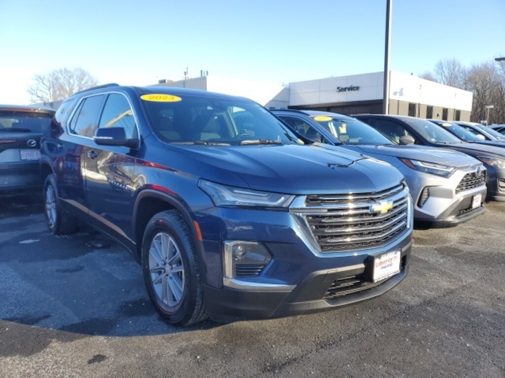 Liberty Mazda is proud to present you with another True Market Priced Pre-Owned Vehicle. This 2023 Chevrolet Traverse LT 1LT is loaded with the following Factory Options: AWD Front License Plate Bracket Mounting Package, Preferred Equipment Group 1LT (Heated Driver & Front Passenger Seats), AWD, 2-Way Manual Front Passenger Seat Adjuster, 3.49 Axle Ratio, 3rd row seats: split-bench, 4-Wheel Disc Brakes, 6 Speakers, 6-Speaker Audio System Feature, 8-Way Power Driver Seat Adjuster, ABS brakes, Air Conditioning, Alloy wheels, AM/FM radio: SiriusXM, Apple CarPlay/Android Auto, Auto High-beam Headlights, Automatic temperature control, Black Roof Rails, Brake assist, Bumpers: body-color, Compass, Delay-off headlights, Driver door bin, Driver vanity mirror, Dual front impact airbags, Dual front side impact airbags, Electronic Stability Control, Emergency communication system, Exterior Parking Camera Rear, Four wheel independent suspension, Front anti-roll bar, Front Bucket Seats, Front Center Armrest, Front dual zone A/C, Front reading lights, Fully automatic headlights, Garage door transmitter, Heated door mirrors, Heated front seats, Illuminated entry, Leather steering wheel, Low tire pressure warning, Not Equipped w/Rear Park Assist, Occupant sensing airbag, Outside temperature display, Overhead airbag, Overhead console, Panic alarm, Passenger door bin, Passenger vanity mirror, Power door mirrors, Power Driver Lumbar Control, Power driver seat, Power Liftgate, Power steering, Power windows, Premium Cloth Seat Trim, Radio data system, Radio: Chevrolet Infotainment 3 Plus System, Rear air conditioning, Rear anti-roll bar, Rear reading lights, Rear window defroster, Rear window wiper, Remote keyless entry, Security system, SiriusXM w/360L, Speed control, Speed-sensing steering, Spoiler, Steering wheel mounted audio controls, Tachometer, Telescoping steering wheel, Tilt steering wheel, Traction control, Trip computer, Turn signal indicator mirrors, Variably intermittent wipers, Voltmeter, and Wheels: 18" Bright Silver-Painted Aluminum!!