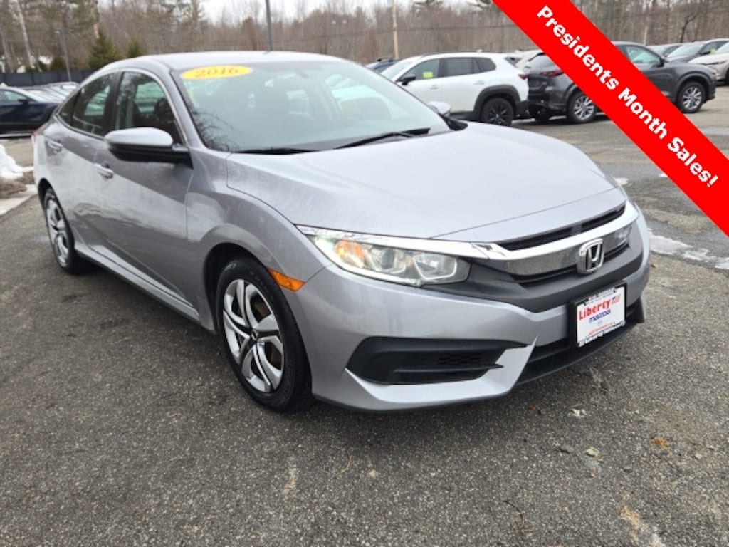 Liberty Mazda is proud to present you with another True Market Priced Pre-Owned Vehicle. This 2016 Honda Civic LX is loaded with the following Factory Options: Cloth Cloth, 16" Wheels w/Full Covers, 4 Speakers, 4-Wheel Disc Brakes, ABS brakes, Air Conditioning, AM/FM radio, Automatic temperature control, Brake assist, Bumpers: body-color, Cloth Seat Trim, Compass, Delay-off headlights, Driver door bin, Driver vanity mirror, Dual front impact airbags, Dual front side impact airbags, Electronic Stability Control, Exterior Parking Camera Rear, Four wheel independent suspension, Front anti-roll bar, Front Bucket Seats, Front Center Armrest, Front reading lights, Fully automatic headlights, Illuminated entry, Low tire pressure warning, Occupant sensing airbag, Outside temperature display, Overhead airbag, Panic alarm, Passenger door bin, Passenger vanity mirror, Power door mirrors, Power steering, Power windows, Radio data system, Radio: 160-Watt AM/FM Audio System, Rear anti-roll bar, Rear window defroster, Reclining Front Bucket Seats, Remote keyless entry, Security system, Speed control, Speed-sensing steering, Steering wheel mounted audio controls, Tachometer, Telescoping steering wheel, Tilt steering wheel, and Traction control!!