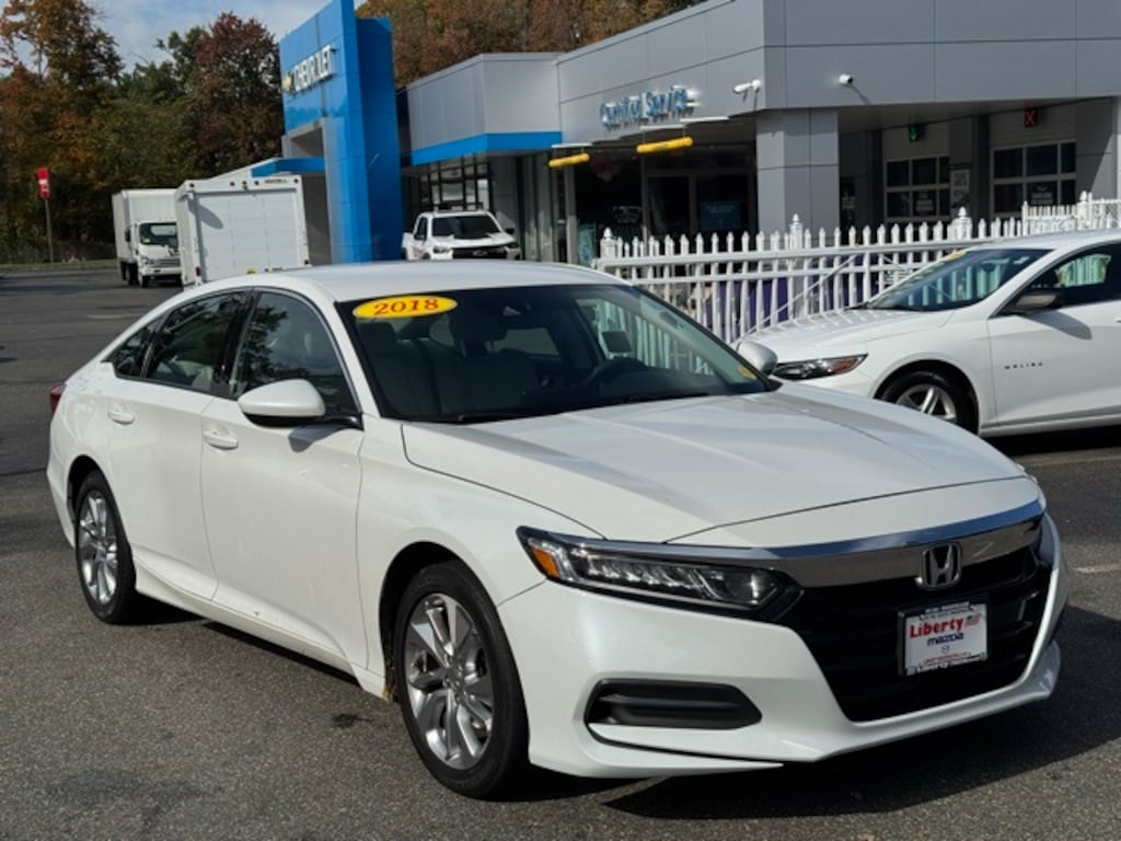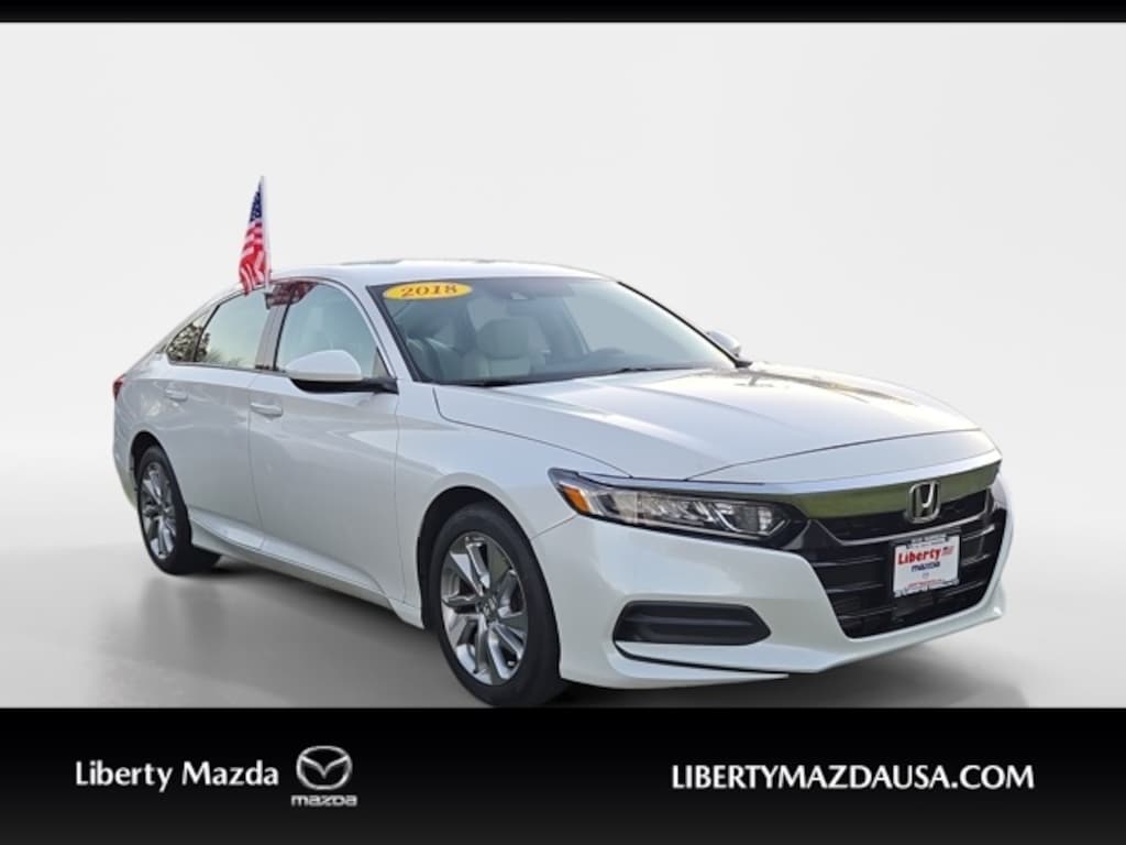 Liberty Mazda is proud to present you with another True Market Priced Pre-Owned Vehicle. This 2018 Honda Accord LX is loaded with the following Factory Options: Cloth Cloth, 4 Speakers, 4-Wheel Disc Brakes, ABS brakes, Air Conditioning, Alloy wheels, AM/FM radio, Auto High-beam Headlights, Automatic temperature control, Brake assist, Bumpers: body-color, Cloth Seat Trim, Delay-off headlights, Driver door bin, Driver vanity mirror, Dual front impact airbags, Dual front side impact airbags, Electronic Stability Control, Exterior Parking Camera Rear, Four wheel independent suspension, Front anti-roll bar, Front Bucket Seats, Front Center Armrest, Front dual zone A/C, Front reading lights, Fully automatic headlights, Illuminated entry, Knee airbag, Low tire pressure warning, Occupant sensing airbag, Outside temperature display, Overhead airbag, Overhead console, Panic alarm, Passenger door bin, Passenger vanity mirror, Power door mirrors, Power steering, Power windows, Radio data system, Radio: 160-Watt AM/FM Audio System, Rear anti-roll bar, Rear seat center armrest, Rear window defroster, Remote keyless entry, Security system, Speed control, Speed-sensing steering, Speed-Sensitive Wipers, Steering wheel mounted audio controls, Tachometer, Telescoping steering wheel, Tilt steering wheel, Traction control, Trip computer, Variably intermittent wipers, and Wheels: 17" Silver-Painted Alloy!!
