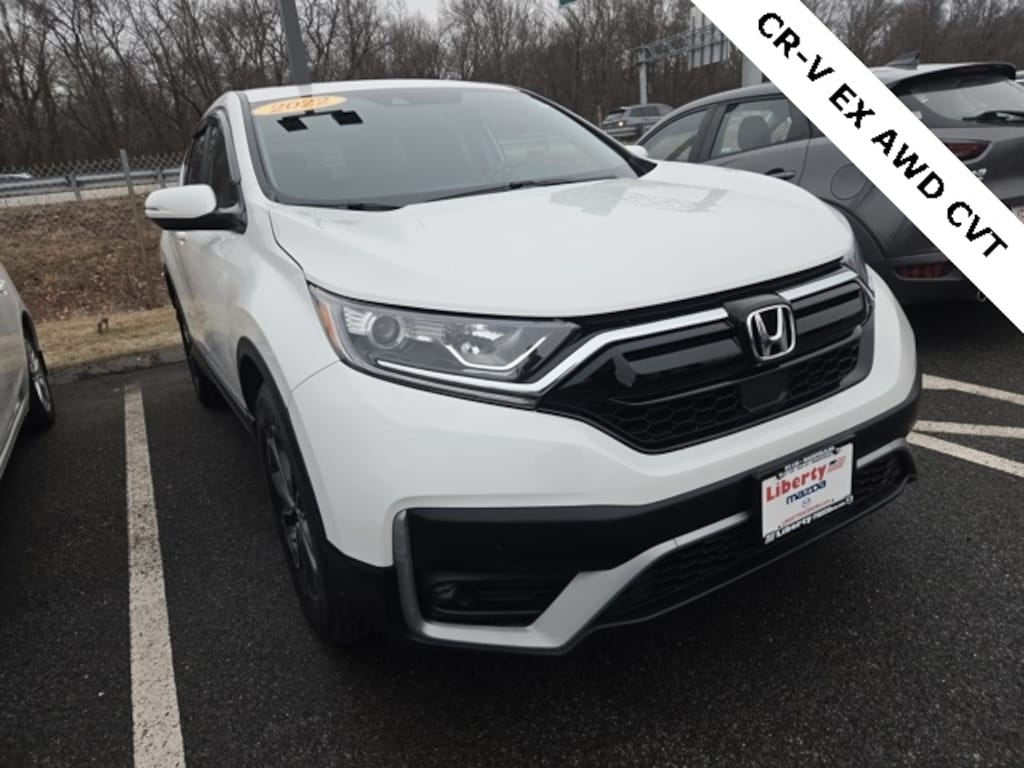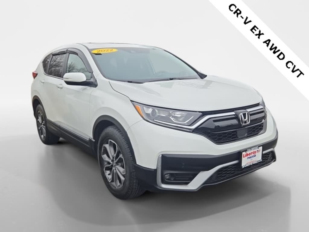 Liberty Mazda is proud to present you with another True Market Priced Pre-Owned Vehicle. This 2022 Honda CR-V EX is loaded with the following Factory Options: AWD AWD, 18" Alloy Wheels, 4-Wheel Disc Brakes, 5.64 Axle Ratio, 6 Speakers, ABS brakes, Adaptive Cruise Control: Adaptive Cruise Control (ACC) with Low-Speed Follow, Air Conditioning, Alloy wheels, AM/FM radio: SiriusXM, Apple CarPlay/Android Auto, Auto High-beam Headlights, Automatic temperature control, Blind Spot Information (BSI) System warning, Brake assist, Bumpers: body-color, Cloth Seat Trim, Compass, Delay-off headlights, Driver door bin, Driver vanity mirror, Dual front impact airbags, Dual front side impact airbags, Electronic Stability Control, Exterior Parking Camera Rear, Forward collision: Collision Mitigation Braking System (CMBS) + FCW mitigation, Four wheel independent suspension, Front anti-roll bar, Front Bucket Seats, Front Center Armrest, Front dual zone A/C, Front fog lights, Front reading lights, Heated door mirrors, Heated Front Bucket Seats, Heated front seats, Illuminated entry, Low tire pressure warning, Occupant sensing airbag, Outside temperature display, Overhead airbag, Overhead console, Panic alarm, Passenger door bin, Passenger vanity mirror, Power door mirrors, Power driver seat, Power moonroof, Power steering, Power windows, Radio data system, Radio: 180-Watt AM/FM/HD/SiriusXM Audio System, Rear anti-roll bar, Rear seat center armrest, Rear window defroster, Rear window wiper, Remote keyless entry, Security system, Speed control, Speed-sensing steering, Speed-Sensitive Wipers, Split folding rear seat, Spoiler, Steering wheel mounted audio controls, Tachometer, Telescoping steering wheel, Tilt steering wheel, Traction control, Trip computer, Turn signal indicator mirrors, and Variably intermittent wipers!!