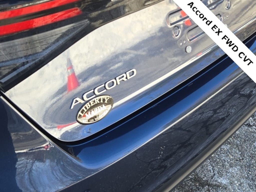 Liberty Mazda is proud to present you with another True Market Priced Pre-Owned Vehicle. This 2023 Honda Accord EX is loaded with the following Factory Options: Cloth Cloth, 4-Wheel Disc Brakes, 8 Speakers, ABS brakes, Adaptive Cruise Control: Adaptive Cruise Control (ACC) with Low-Speed Follow, Air Conditioning, Alloy wheels, AM/FM radio, Apple CarPlay/Android Auto, Auto High-beam Headlights, Auto-dimming Rear-View mirror, Automatic temperature control, Brake assist, Bumpers: body-color, Compass, Delay-off headlights, Driver door bin, Driver vanity mirror, Dual front impact airbags, Dual front side impact airbags, Electronic Stability Control, Emergency communication system: HondaLink Assist, Exterior Parking Camera Rear, Fabric Seat Trim, Four wheel independent suspension, Front anti-roll bar, Front Bucket Seats, Front Center Armrest, Front dual zone A/C, Front reading lights, Fully automatic headlights, Heated door mirrors, Heated Front Bucket Seats, Heated front seats, Illuminated entry, Knee airbag, Lane departure: Lane Keeping Assist System (LKAS) active, Low tire pressure warning, Occupant sensing airbag, Outside temperature display, Overhead airbag, Overhead console, Panic alarm, Passenger door bin, Passenger vanity mirror, Power door mirrors, Power driver seat, Power moonroof, Power steering, Power windows, Radio data system, Radio: 180-Watt AM/FM Audio System, Rear anti-roll bar, Rear reading lights, Rear seat center armrest, Rear side impact airbag, Rear window defroster, Remote keyless entry, Security system, Speed control, Speed-sensing steering, Speed-Sensitive Wipers, Split folding rear seat, Steering wheel mounted audio controls, Tachometer, Telescoping steering wheel, Tilt steering wheel, Traction control, Trip computer, Variably intermittent wipers, and Wheels: 17" x 7.5" Pewter Gray!!