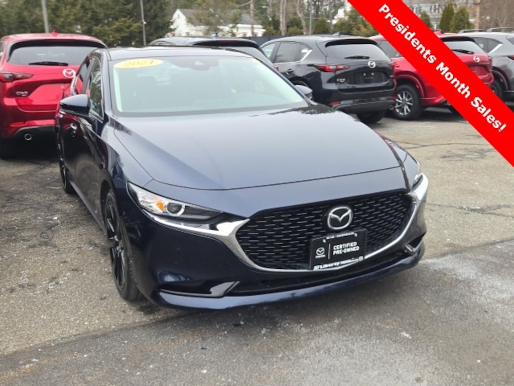 Liberty Mazda is proud to present you with another True Market Priced Pre-Owned Vehicle. This 2021 Mazda Mazda3 Preferred is loaded with the following Factory Options: Preferred Package, 4-Wheel Disc Brakes, 8 Speakers, ABS brakes, Air Conditioning, Alloy wheels, AM/FM radio, AppLink/Apple CarPlay and Android Auto, Auto High-beam Headlights, Automatic temperature control, Brake assist, Bumpers: body-color, Compass, Delay-off headlights, Driver door bin, Driver vanity mirror, Dual front impact airbags, Dual front side impact airbags, Electronic Stability Control, Emergency communication system: MAZDA CONNECT, Exterior Parking Camera Rear, Front anti-roll bar, Front Bucket Seats, Front Center Armrest, Front dual zone A/C, Front reading lights, Front wheel independent suspension, Fully automatic headlights, Heated front seats, Heated Front Sport Seats, Illuminated entry, Knee airbag, Leather Shift Knob, Leatherette Seat Trim, Low tire pressure warning, Memory seat, Occupant sensing airbag, Outside temperature display, Overhead airbag, Overhead console, Panic alarm, Passenger door bin, Passenger vanity mirror, Power door mirrors, Power driver seat, Power moonroof, Power steering, Power windows, Radio data system, Radio: AM/FM Audio System, Rain sensing wipers, Rear seat center armrest, Rear window defroster, Remote keyless entry, Speed control, Speed-sensing steering, Split folding rear seat, Steering wheel mounted audio controls, Tachometer, Telescoping steering wheel, Tilt steering wheel, Traction control, Trip computer, Turn signal indicator mirrors, Variably intermittent wipers, Wheel Locks, and Wheels: 18" x 7J Silver Alloy!!