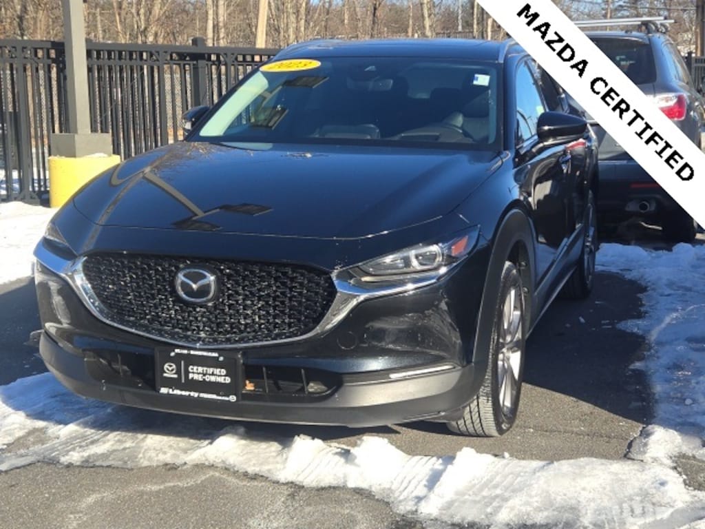 Liberty Mazda is proud to present you with another True Market Priced Pre-Owned Vehicle. This 2023 Mazda CX-30 2.5 S Premium Package Mazda Certified Pre-Owned is loaded with the following Factory Options: Mazda Certified Pre-Owned Certified, 4-Wheel Disc Brakes, 4.095 Axle Ratio, 8 Speakers, ABS brakes, Air Conditioning, Alloy wheels, AppLink/Apple CarPlay and Android Auto, Auto High-beam Headlights, Automatic temperature control, Bose Audio Credit, Brake assist, Bumpers: body-color, Cargo Net, Compass, Delay-off headlights, Driver door bin, Driver vanity mirror, Dual front impact airbags, Dual front side impact airbags, Electronic Stability Control, Emergency communication system: Mazda Connected Services (3-year complimentary trial included), Exterior Parking Camera Rear, Front anti-roll bar, Front Bucket Seats, Front Center Armrest, Front dual zone A/C, Front reading lights, Front wheel independent suspension, Fully automatic headlights, Heads-Up Display, Heated Front Bucket Seats, Heated front seats, Illuminated entry, Knee airbag, Leather Seat Trim, Leather Shift Knob, Leather steering wheel, Low tire pressure warning, MAZDA CONNECT Infotainment System, Memory seat, Navigation system: MAZDA CONNECT, Occupant sensing airbag, Outside temperature display, Overhead airbag, Overhead console, Panic alarm, Passenger door bin, Passenger vanity mirror, Power door mirrors, Power driver seat, Power Liftgate, Power moonroof, Power steering, Power windows, Radio data system, Radio: AM/FM/HD Audio System w/Mazda Navigation, Rain sensing wipers, Rear seat center armrest, Rear side impact airbag, Rear window defroster, Rear window wiper, Remote keyless entry, Speed control, Speed-sensing steering, Split folding rear seat, Spoiler, Stainless Steel Rear Bumper Guard, Steering wheel mounted audio controls, Tachometer, Telescoping steering wheel, Tilt steering wheel, Traction control, Trip computer, Turn signal indicator mirrors, Variably intermittent wipers, Wheel Locks, and Wheels: 18" x 7J Aluminum Alloy!!