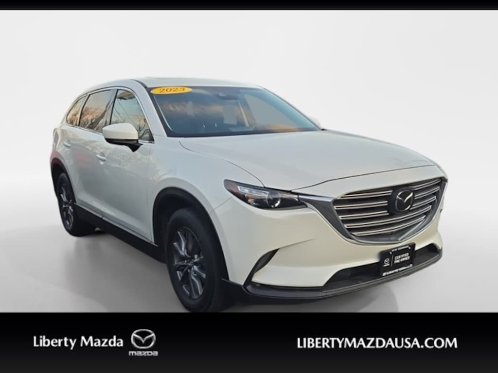 Liberty Mazda is proud to present you with another True Market Priced Pre-Owned Vehicle. This 2023 Mazda CX-9 Touring Mazda Certified Pre-Owned is loaded with the following Factory Options: AWD Mazda Certified Pre-Owned Certified, AWD, 3rd row seats: bench, 4-Wheel Disc Brakes, 4.411 Axle Ratio, 6 Speakers, ABS brakes, Air Conditioning, Alloy wheels, AM/FM radio, AppLink/Apple CarPlay and Android Auto, Auto High-beam Headlights, Auto-dimming Rear-View mirror, Automatic temperature control, Brake assist, Bumpers: body-color, Compass, Delay-off headlights, Driver door bin, Driver vanity mirror, Dual front impact airbags, Dual front side impact airbags, E911 Automatic Emergency Notification, Electronic Stability Control, Emergency communication system: MAZDA CONNECT, Exterior Parking Camera Rear, Four wheel independent suspension, Front anti-roll bar, Front Bucket Seats, Front Center Armrest, Front dual zone A/C, Front fog lights, Front reading lights, Fully automatic headlights, Garage door transmitter: HomeLink, Heated door mirrors, Heated Front Bucket Seats, Heated front seats, Illuminated entry, Infotainment System Voice Command, Interior Lighting Kit, Leather Seat Trim, Leather Shift Knob, Leather steering wheel, Low tire pressure warning, Mazda Connected Services, Occupant sensing airbag, Outside temperature display, Overhead airbag, Overhead console, Pandora Internet Radio Integration, Panic alarm, Passenger door bin, Passenger vanity mirror, Power door mirrors, Power driver seat, Power Liftgate, Power moonroof, Power passenger seat, Power steering, Power windows, Radio Broadcast Data System Program Information, Radio data system, Radio: AM/FM Sound System, Rain sensing wipers, Rear air conditioning, Rear anti-roll bar, Rear reading lights, Rear window defroster, Rear window wiper, Remote keyless entry, SMS Text Msg Audio Delivery & Reply, Snowflake White Pearl Mica Paint, Speed control, Speed-sensing steering, Split folding rear seat, Spoiler, Steering wheel mounted audio controls, Tachometer, Telescoping steering wheel, Tilt steering wheel, Traction control, Trip computer, Turn signal indicator mirrors, Variably intermittent wipers, Wheel Locks, and Wheels: 18" x 8J Aluminum Alloy!!