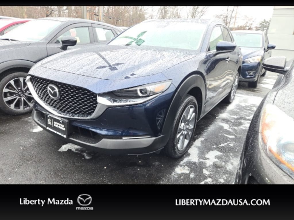 Liberty Mazda is proud to present you with another True Market Priced Pre-Owned Vehicle. This 2025 Mazda CX-30 2.5 S Premium Package is loaded with the following Factory Options: 12 Speakers, 4-Wheel Disc Brakes, ABS brakes, Air Conditioning, Alloy wheels, AM/FM radio: SiriusXM, AppLink/Apple CarPlay and Android Auto, Auto High-beam Headlights, Automatic temperature control, Brake assist, Bumpers: body-color, Cargo Net, Compass, Delay-off headlights, Driver door bin, Driver vanity mirror, Dual front impact airbags, Dual front side impact airbags, Electronic Stability Control, Emergency communication system: Mazda Connected Services (3-year trial subscription included), Exterior Parking Camera Rear, Front anti-roll bar, Front Bucket Seats, Front Center Armrest, Front dual zone A/C, Front reading lights, Front wheel independent suspension, Fully automatic headlights, Heads-Up Display, Heated door mirrors, Heated Front Bucket Seats, Heated front seats, Illuminated entry, Knee airbag, Leather Seat Trim, Leather Shift Knob, Leather steering wheel, Low tire pressure warning, MAZDA CONNECT Infotainment System, Memory seat, Navigation system: MAZDA CONNECT, Occupant sensing airbag, Outside temperature display, Overhead airbag, Overhead console, Panic alarm, Passenger door bin, Passenger vanity mirror, Power door mirrors, Power driver seat, Power Liftgate, Power moonroof, Power steering, Power windows, Radio data system, Radio: AM/FM/HD Audio w/Mazda Online Navigation, Rain sensing wipers, Rear seat center armrest, Rear side impact airbag, Rear window defroster, Rear window wiper, Remote keyless entry, Speed control, Speed-sensing steering, Split folding rear seat, Spoiler, Stainless Steel Rear Bumper Guard, Steering wheel mounted audio controls, Tachometer, Telescoping steering wheel, Tilt steering wheel, Traction control, Trip computer, Turn signal indicator mirrors, Variably intermittent wipers, and Wheels: 18" x 7J Aluminum Alloy!!