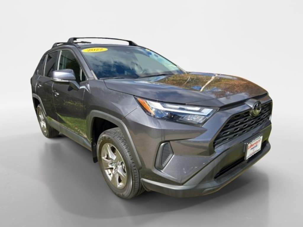 Liberty Mazda is proud to present you with another True Market Priced Pre-Owned Vehicle. This 2022 Toyota RAV4 XLE is loaded with the following Factory Options: AWD and Black Cloth All Weather Liner Package (TMS) (All Weather Floor Liners), Convenience Package (Front Door Smart Key System w/Push Button Start and Tilt & Slide Moon Roof), XLE Grade Weather Package (3 Spoke Leather Heated Steering Wheel, Front Seat Heating, and Rain Sensing Front Wipers), AWD, Black Cloth, 4-Wheel Disc Brakes, 6 Speakers, ABS brakes, Air Conditioning, Alloy wheels, AM/FM radio: SiriusXM, AM/FM Stereo, Apple CarPlay/Android Auto, Auto High-beam Headlights, Automatic temperature control, Axle Ratio: 3.177, Brake assist, Bumpers: body-color, Cross Bars (TMS), Delay-off headlights, Door Edge Guard (TMS), Driver door bin, Driver vanity mirror, Dual front impact airbags, Dual front side impact airbags, Electronic Stability Control, Emergency communication system: Safety Connect with 1-year trial, Exterior Parking Camera Rear, Fabric Seat Trim, Four wheel independent suspension, Front anti-roll bar, Front Bucket Seats, Front Center Armrest, Front dual zone A/C, Front reading lights, Fully automatic headlights, Heated door mirrors, Illuminated entry, Knee airbag, Low tire pressure warning, Mudguard (TMS), Occupant sensing airbag, Outside temperature display, Overhead airbag, Overhead console, Panic alarm, Passenger door bin, Passenger vanity mirror, Power door mirrors, Power driver seat, Power steering, Power windows, Radio data system, Rear anti-roll bar, Rear seat center armrest, Rear window defroster, Rear window wiper, Remote keyless entry, Roof rack: rails only, Speed control, Speed-sensing steering, Split folding rear seat, Spoiler, Steering wheel mounted audio controls, Tachometer, Telescoping steering wheel, Tilt steering wheel, Traction control, Trip computer, Turn signal indicator mirrors, Variably intermittent wipers, Wheel Lock (TMS), and Wheels: 17" 5-Spoke Silver Alloy!!